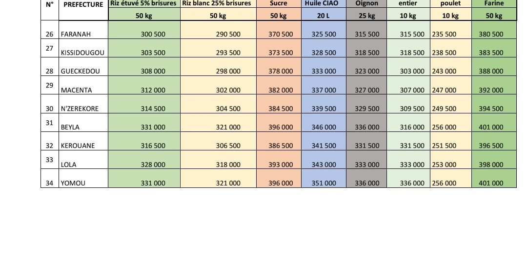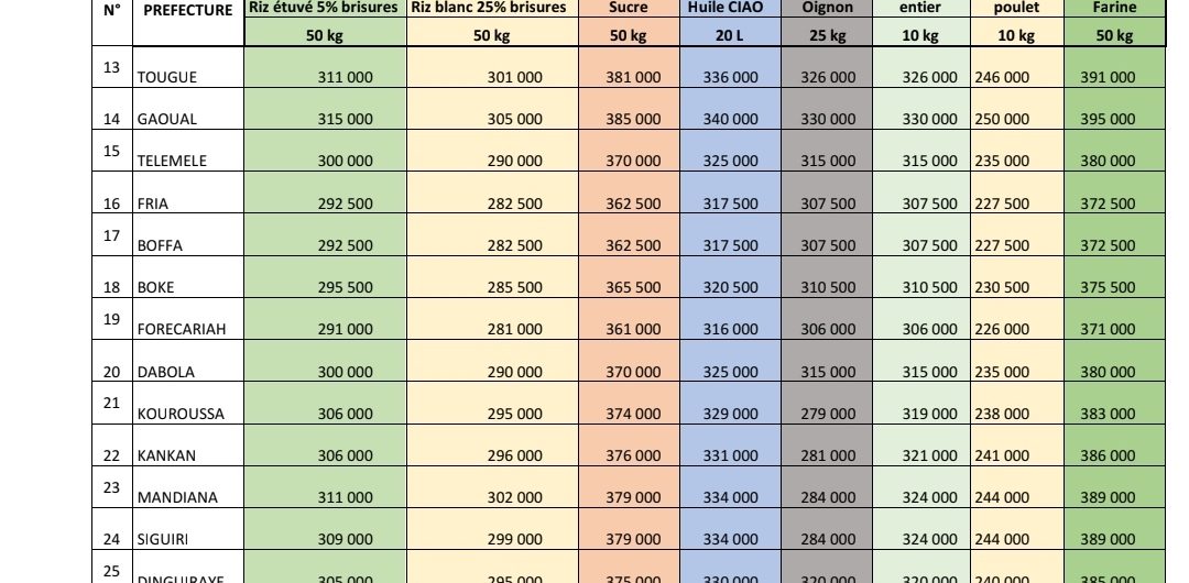 Riz, farine, sucre, oignon, huile : le Gouvernement guinéen officialise le prix des denrées alimentaires.